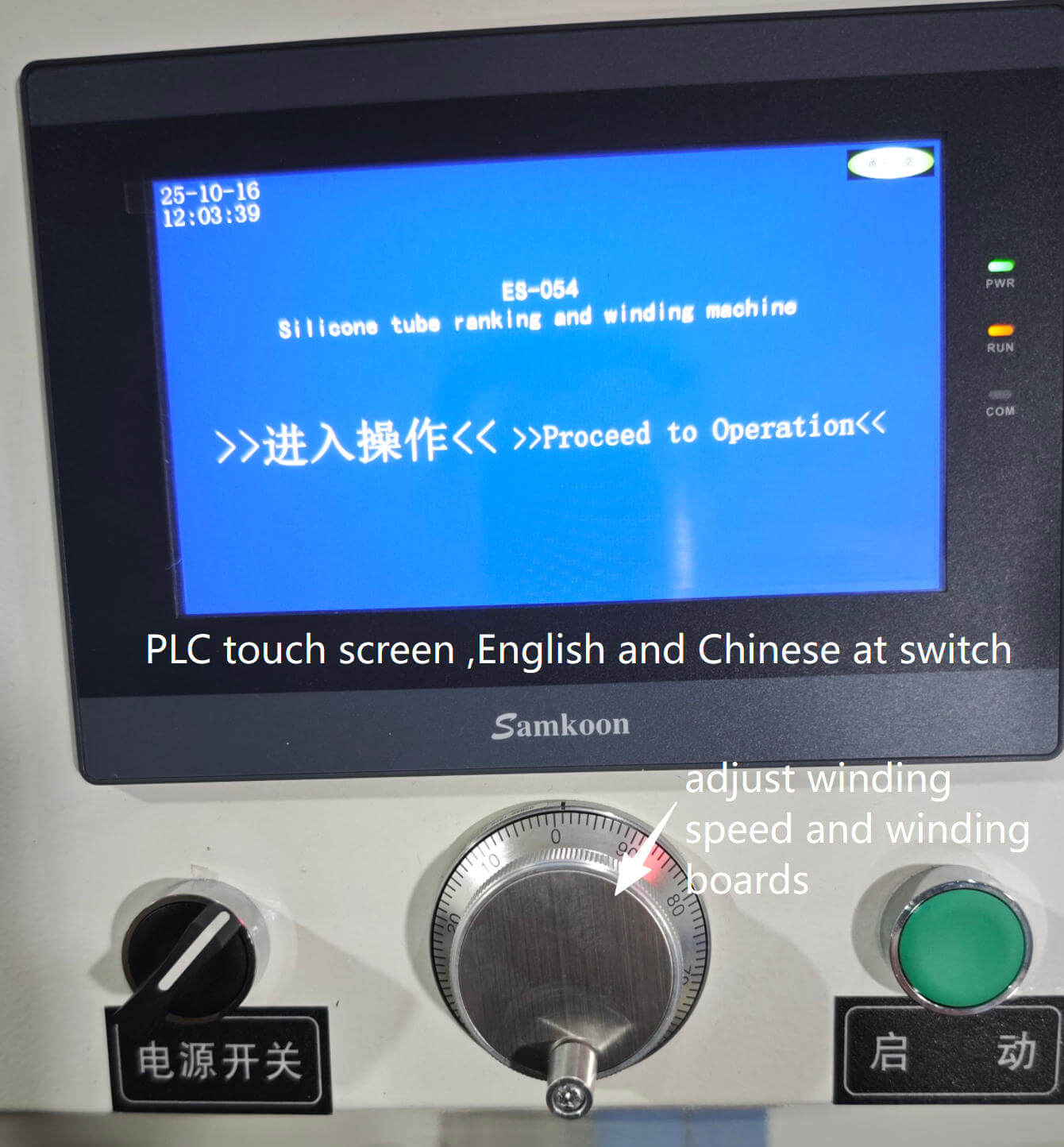 5 , PLC touch screen ,this High-speed silicone hose coiler will be easy to use with PLC touch screen control , customer can set the tube roll winding length ranking width , weighing amount , winding speed etc. when material runs out the machine will sound alarm to remind workers to unload finished tube roll and load new ones